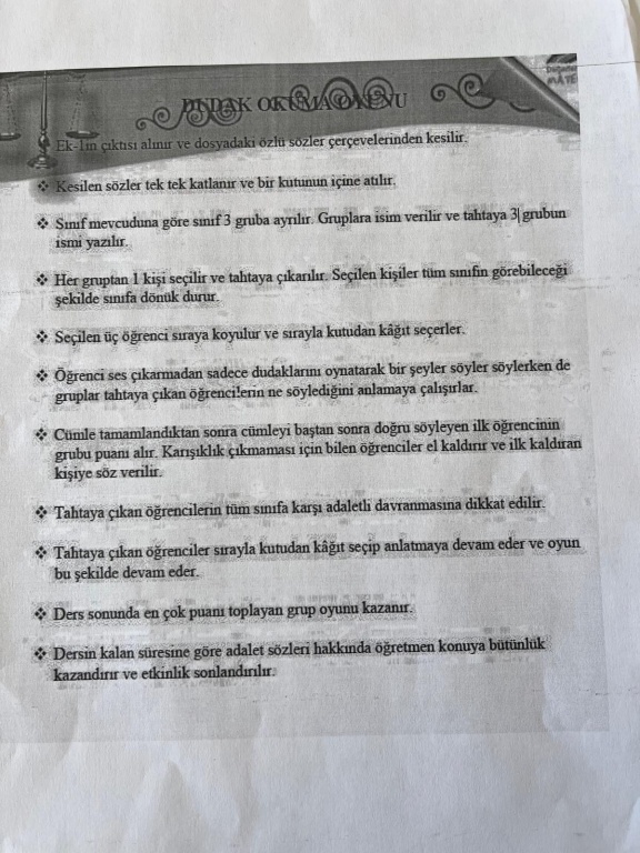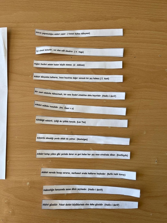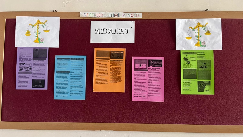 Değerler Eğitimi kapsamında her ay bir değerimiz üzerinde durulmaktadır.Eylül ayı değerimiz Adalettir. Adalet değeri ile ilgili pano çalışması, resim çizimi ,örnek hikayeler üzerinden tartışma ve oyun etkinliği yapılmıştır.